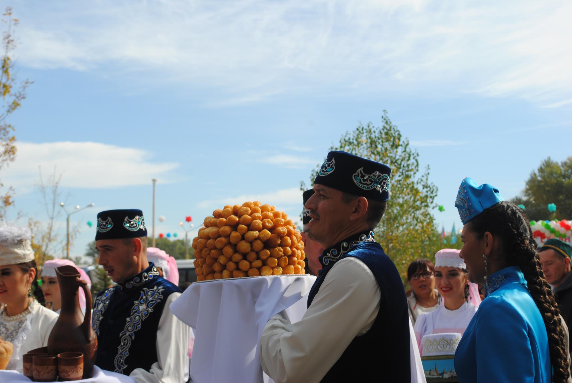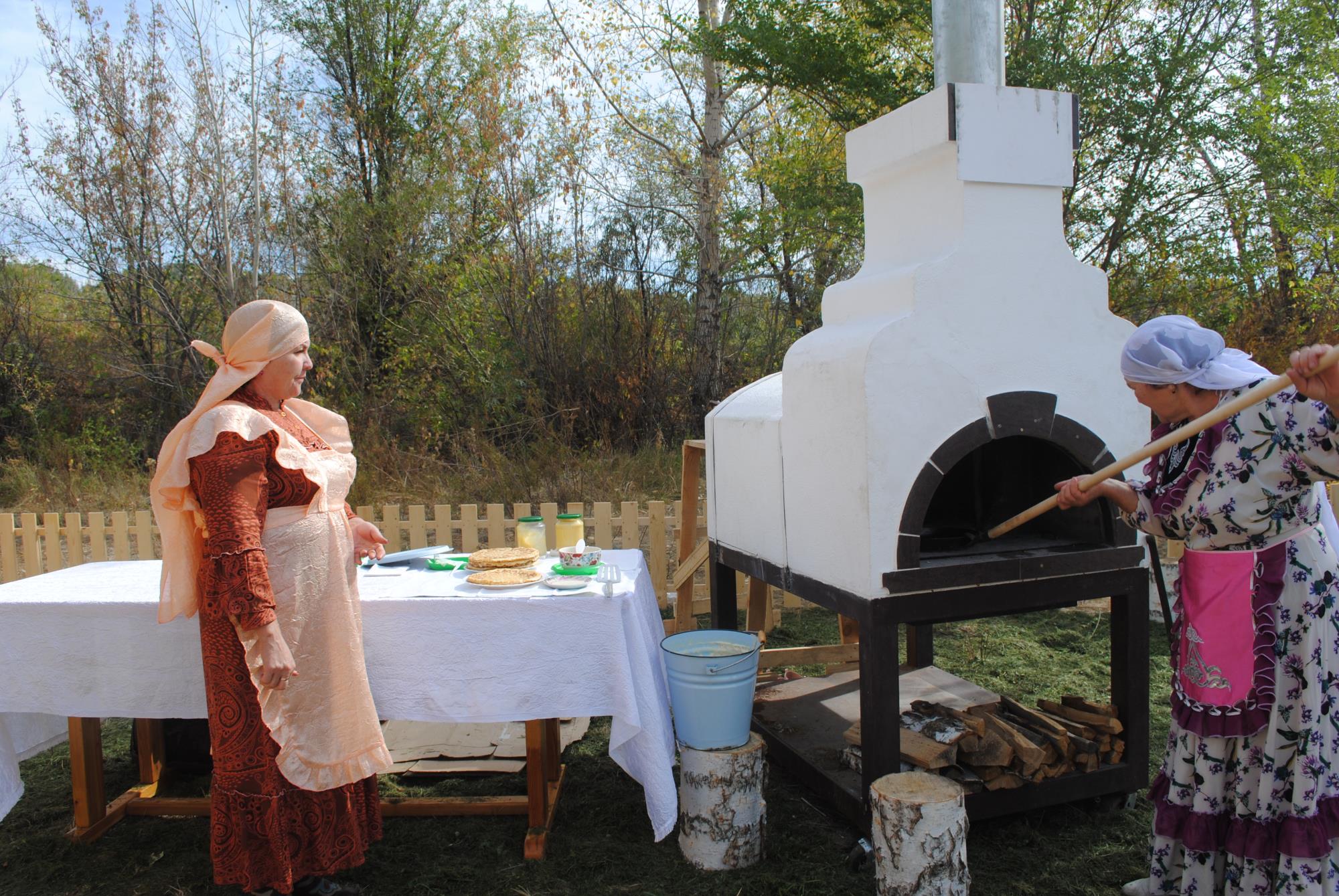 Гостям удалось удивить семейчан. На речном острове Бейбiтшiлiк Актанышский район РТ построил деревенскую татарскую усадьбу. На территории в 10 соток возвели дом, мельницу, баню, беседку, установили традиционную печь, в которой с помощью старинных ухватов выпекали особые татарские блинчики – табикмак. А заодно угощали всех ароматным чаем с душицей, тысячелистником, ромашкой, медом, привезенными из Татарстана. С ними соперничали семейские мастерицы кулинарии.
