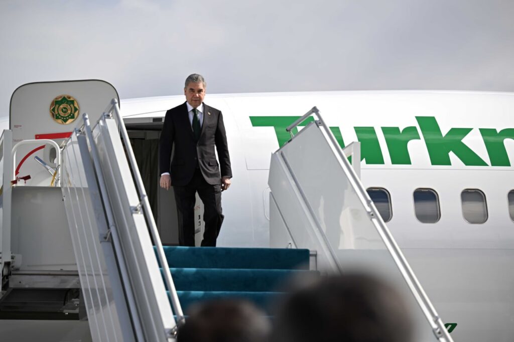 В аэропорту Туркестана высокого гостя встретил глава государства Касым-Жомарт Токаев.