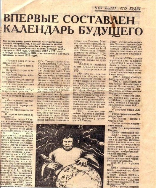 В 2012 году весь мир ждал конца света. Так как астрологи и экстрасенсы утверждали, что мы не умрем, а просто выйдем на более духовный уровень цивилизации, спрос на эзотерическую литературу тогда вырос. Легковерным читателям было особенно интересно, что нас ждёт после апокалипсиса по календарю майя. Смартфоны тогда были далеко не у всех, целевая аудитория подобного чтива дружила с интернетом в лучшем случае на уровне скайпа и «Однокласссников», поэтому одно из российских издательств выпустило приличный томик, где под одной обложкой были собраны пророчества от античных оракулов и Нострадамуса до Павла Глобы и финалистов «Битвы экстрасенсов». Из 580 страниц предсказаний практически все вызывают ухмылку.