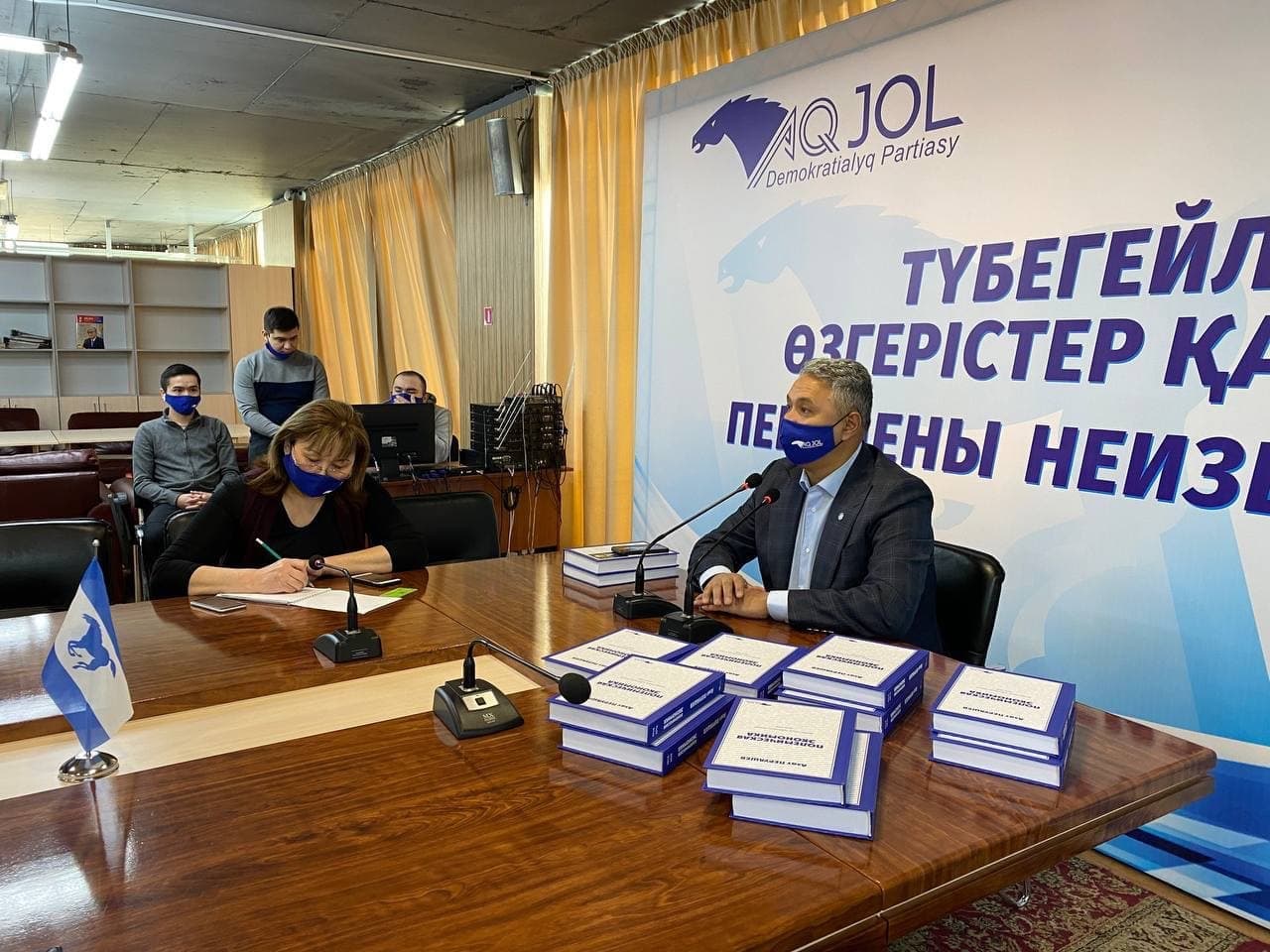 Сегодня в республиканском штабе «Ак жола» состоялась презентация сборника «Полемическая экономика».