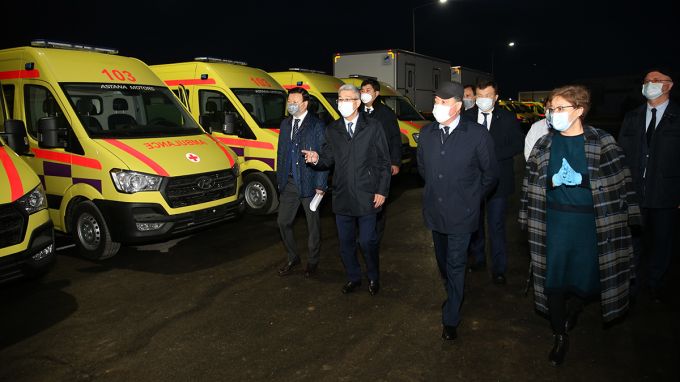 Премьер-Министр осмотрел построенную в Актау модульную инфекционную больницу на 200 коек, поставленные в регион машины скорой помощи и передвижные медицинские комплексы отечественной сборки.