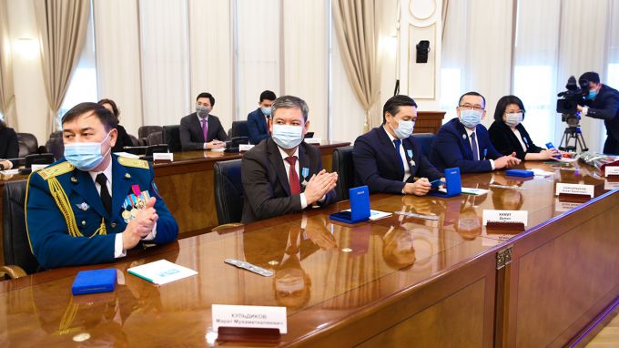 Орденом "Айбын" II степени награжден вице-министр по чрезвычайным ситуациям Марат Кульдиков. Орденом "Құрмет" награждены заместитель руководителя канцелярии премьер-министра Айдын Каримов, заместитель руководителя пресс-службы премьер-министра Думан Хамит, первый вице-министр труда и социальной защиты населения Акмади Сарбасов, вице-министр цифрового развития, инноваций и аэрокосмической промышленности Асхат Оразбек, председатель комитета лесного хозяйства и животного мира министерства экологии, геологии и природных ресурсов Асхат Кайнарбеков, председатель комитета науки министерства образования и науки Жанна Курмангалиева, заместитель председателя комитета автомобильных дорог министерства индустрии и инфраструктурного развития Сатжан Аблалиев, заместитель председателя комитета по обеспечению качества в сфере образования и науки министерства образования и науки Маншук Абдыкарим, заместитель председателя комитета государственного имущества и приватизации министерства финансов Николай Кадюков, председатель правления АО "НК "КазАвтоЖол" Улан Алипов.