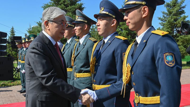 В завершение своей речи Касым-Жомарт Токаев напомнил, что стало доброй традицией присвоение офицерских званий лучшим курсантам в рамках церемонии торжественного поднятия флага.