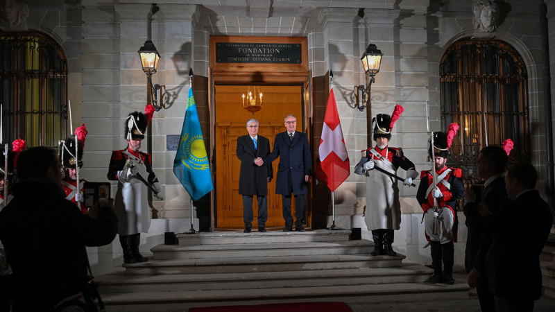 Переговорам на высшем уровне предшествовала официальная церемония встречи на площади Кафедрального собора святого Петра в Женеве, передает Акорда.