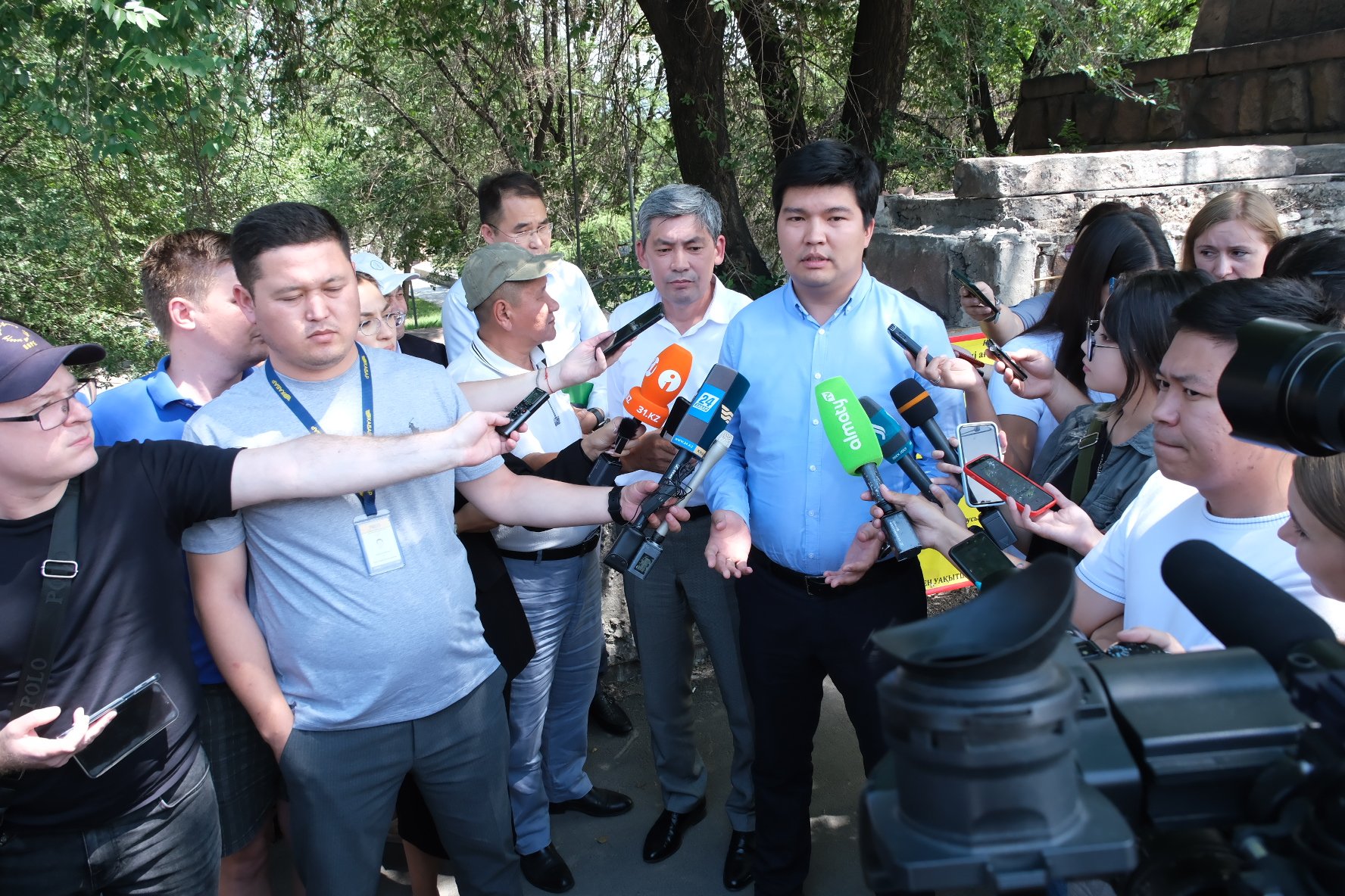 Аким Турксибского района Бахытжан Акжаров и представители СМИ. Фото - пресс-служба акимата г. Алматы