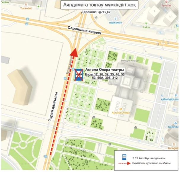 В Астане перекрыт проезд к остановочному пункту «Театр Астана Опера» по пр-ту Туран, передает Caravan.kz со ссылкой на City Transportation Systems.