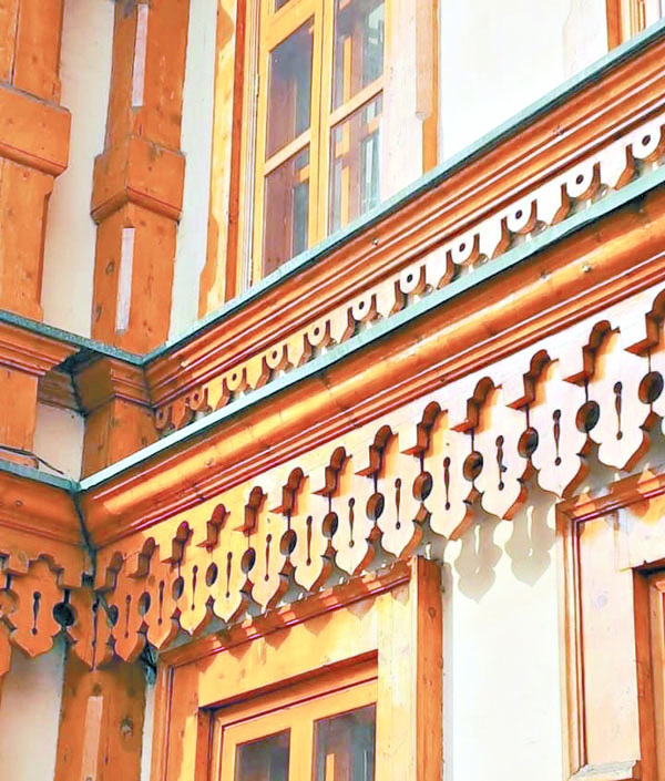 Гостей привлекает еще одно историческое здание, расположенное в парке. Деревянное здание в форме терема. Это Республиканский музей народных инструментов. Он располагается в здании бывшего Дома офицерского собрания, построенного в 1908 году. После войны в этом здании судили банду “Черная кошка”.