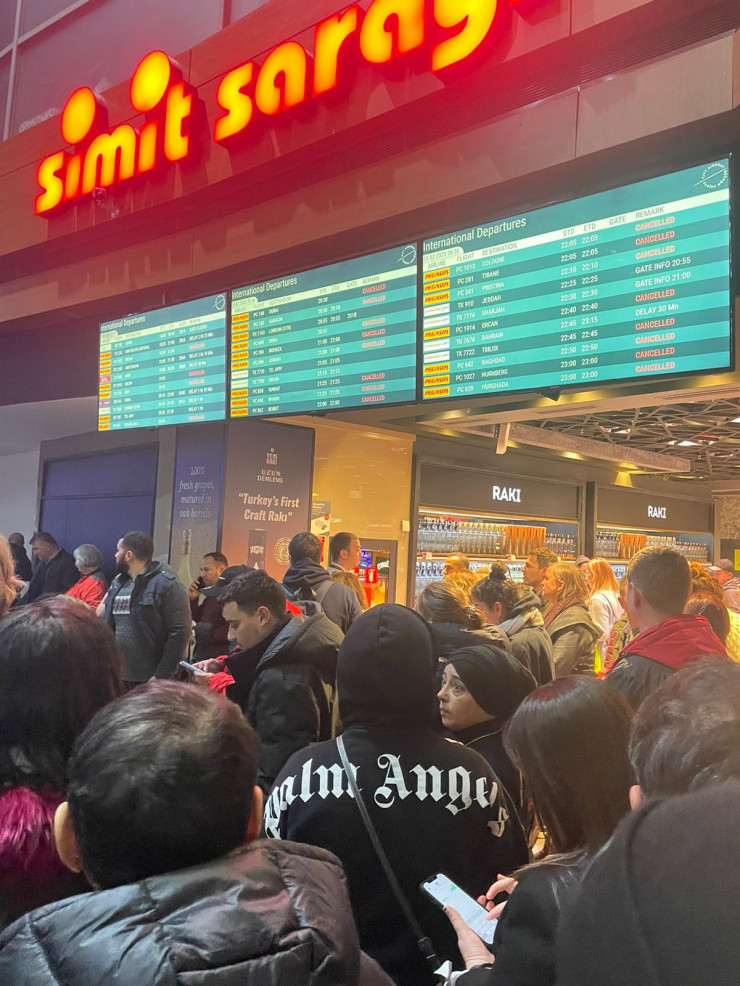 "В воскресенье, 5 февраля, рейсы Стамбул — Астана переносили несколько раз. В этот же день в 21.00 объявили, что все рейсы отменяются по всем направлениям. Наши граждане не могут получить достоверную информацию. Наблюдаются паника и ажиотаж. Аэропорт полный, все этажи заняты людьми, многие не могут получить информацию, что делать, как им быть. Никто не спал, нет условий", — рассказал пассажир.