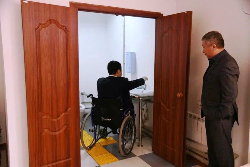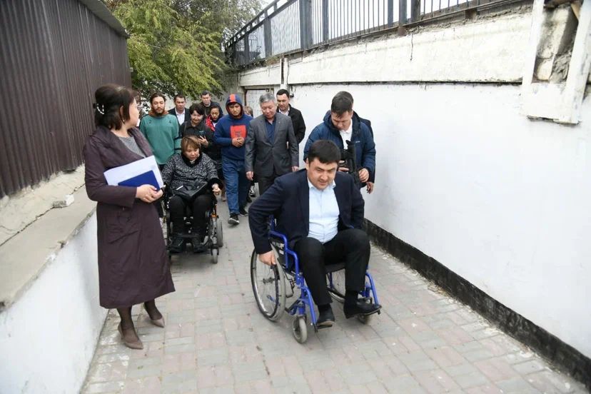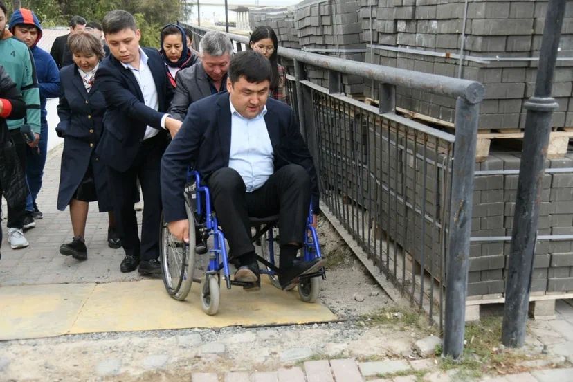 Проверка началась с железнодорожного вокзала. В ходе рейда руководитель областного управления координации занятости и социальных программ Азамат Мамбетов сел на коляску с ручным приводом и проехал до перрона.