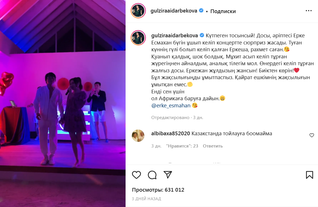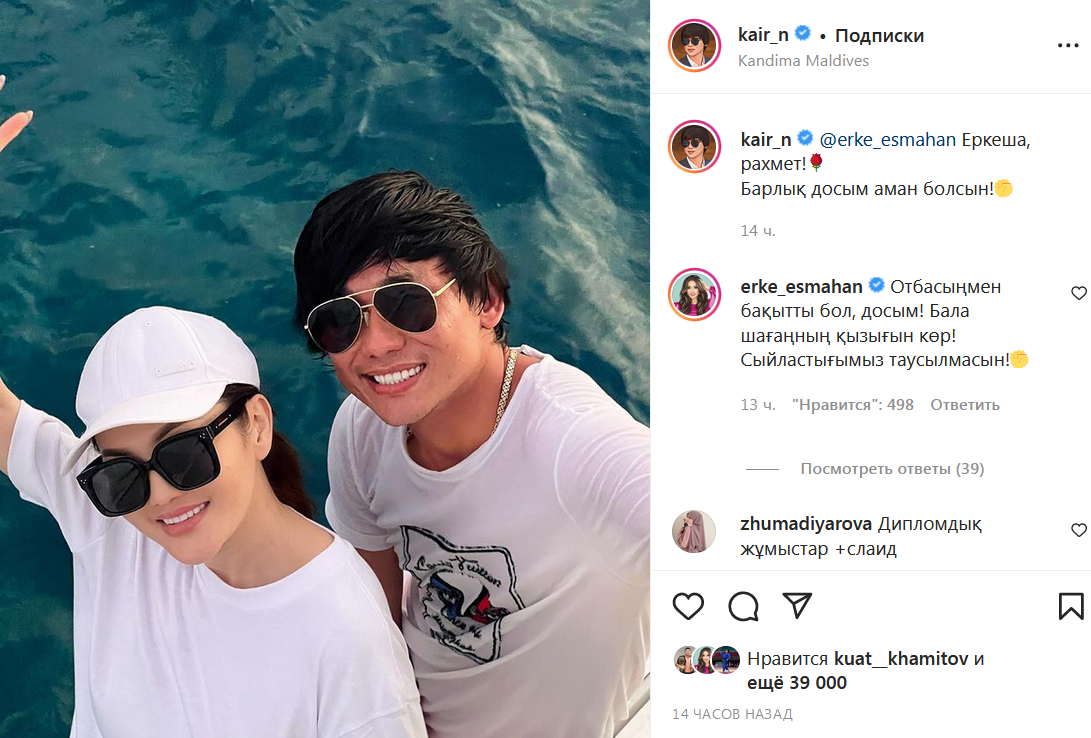 "Еркеша, спасибо. Пусть все мои друзья будут здоровы", — говорится в подписи к снимку.