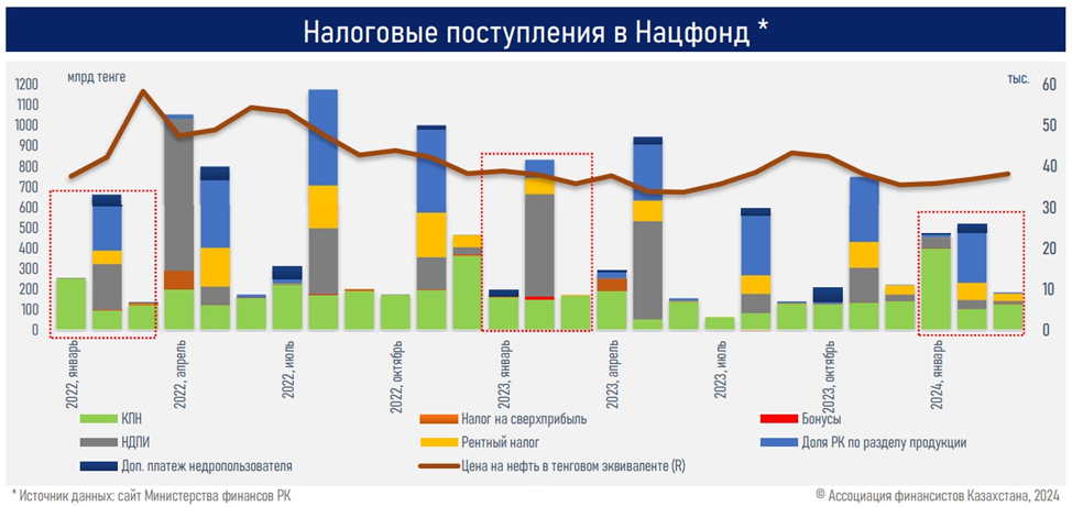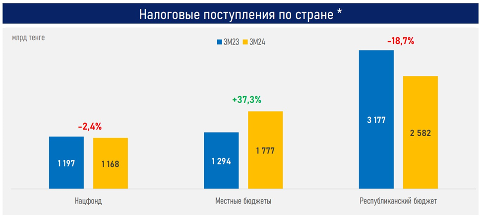 Из Нацфонда правительство изъяло в бюджет 1,45 трлн тенге. Это больше 40 % от годового плана. План изъятий из Нацфонда на 2024 год — 3,6 трлн тенге. В том числе 2 трлн — гарантированные и 1,6 трлн тенге — целевые.