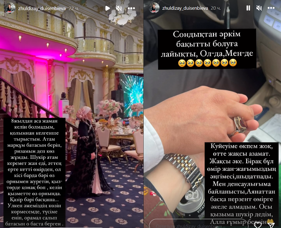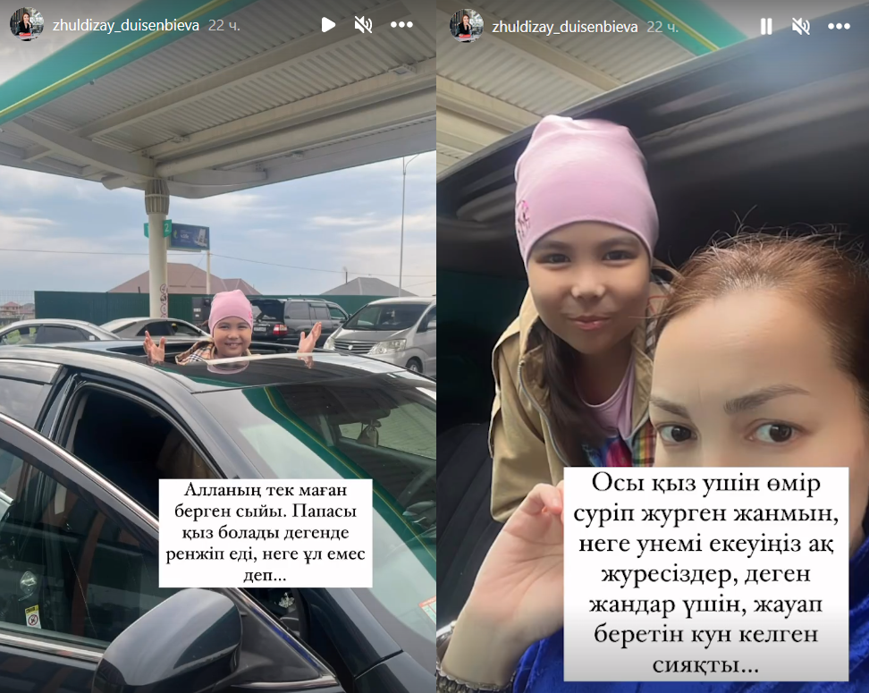 "Подарок, который Аллах вручил только мне. Ее папа обиделся, узнав, что будет девочка, сказал, почему не мальчик. Я живу ради этой девочки. Кажется, настал день, когда нужно все объяснить тем, кто спрашивает, почему мы всегда только вдвоем", — написала Жулдызай.