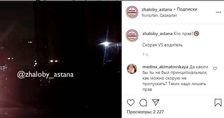 Разборки водителей "скорой" и авто обсуждает Казнет, передает Caravan.kz со ссылкой на instagram-паблик @zhaloby_astana.