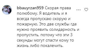 "Скорую нужно пропускать. Тут даже не обсуждается, кто прав, а кто не прав", "Скорая права по-любому. Я водитель и всегда пропускаю скорую и пожарную. Это две службы, где нужно проявить солидарность и пропустить, потому что эти 3 секунды могут спасти кому-то жизнь, либо покалечить ", — комментируют участники паблика.