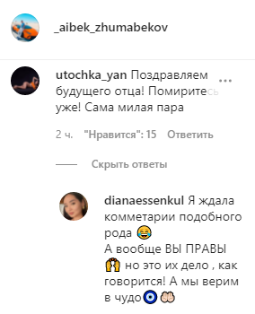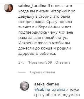 Напомним, недавно Асель Аскар заявила, что расскажет случай подписчицы, и поделилась историей о разводе, в которой всплыло много неприглядных фактов о семье мужа главной героини. Многие детали в рассказе подозрительно совпадали со случаем самой Аскар. В конце истории героиня узнала после развода, что беременна, и подписчики актрисы поспешили сообщить Айбеку Жумабекову, что его бывшая жена в положении. Кроме этой истории Аскар и другими путями намекала на это, например, рассказывала о разыгравшемся аппетите и о том, что её вкусы в еде резко меняются.
