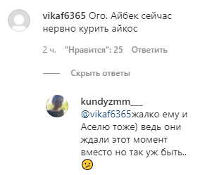 Непонятно только, почему он должен возвращаться, если по словам Асель Аскар инициатором расставания выступила она. Даже в сториз актриса попросила подписчиков забыть об Айбеке и заявила, что не хочет ни слышать, ни видеть ничего о нём: