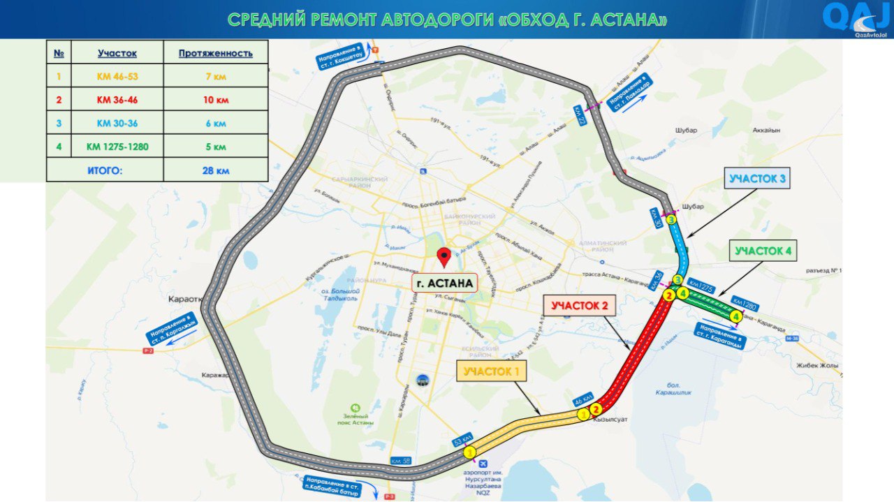 На участке автомобильной дороги Р-10 "Обход Астаны" начались плановые работы, сообщает Caravan.kz со ссылкой на "КазАвтоЖол".