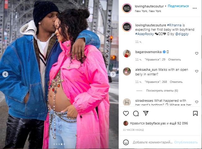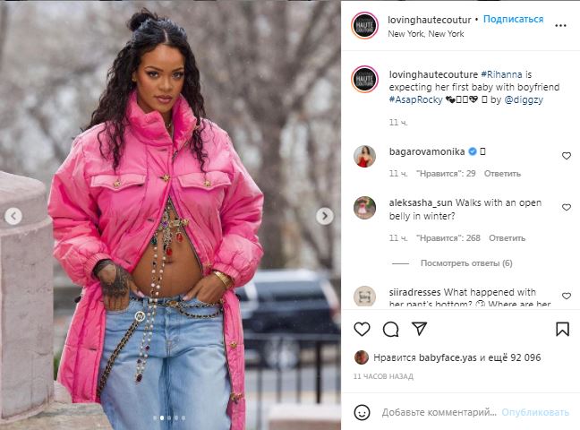 О том, что у исполнительницы родится ребенок, стало известно после публикации ее свежих фотографий. На прошедших выходных ее засняли вместе с музыкантом во время прогулки по Гарлему. Рианна шла по улице в розовой куртке и джинсах, оголив округлившийся живот. Сама исполнительница пока никак не комментировала свою беременность.