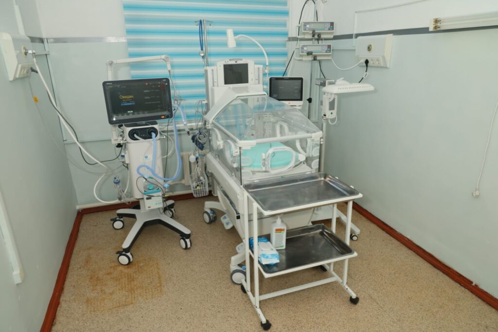 Отделение выхаживания новорожденных получило 22 единицы медицинской техники, включая 1 аппарат ИВЛ, 2 аппарата для неинвазивной вентиляции легких CPAP, 2 кувеза, 3 реанимационных столика, 4 монитора пациентов и 10 ламп фототерапии на общую сумму 143,7 миллиона тенге.