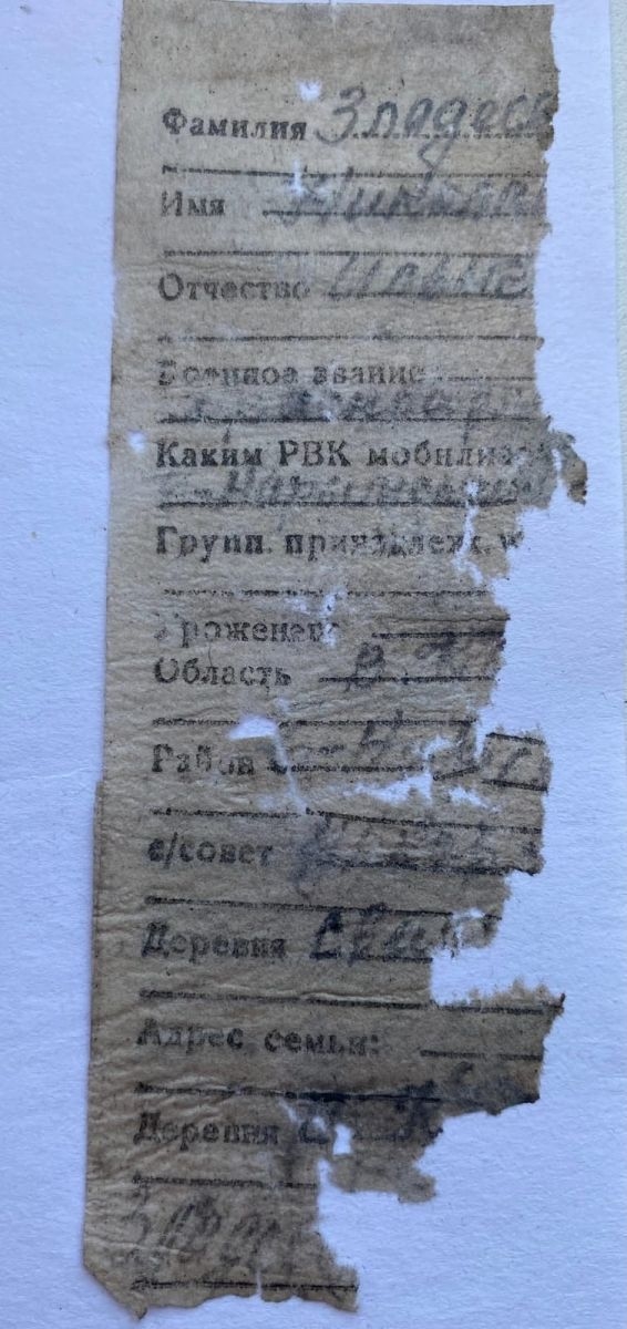 — За помощью к нам обратился боец поискового отряда "Форпост" Евгений Тимофеев. Пока известны только имя и фамилия отца погибшего воина. Его отец — Илья Злодеев, — сообщил Александр Шитов. — Телефон для связи: 8 -777-461-73-78 (Павлодарский поисковый исследовательский отряд «Майдан жолы»)