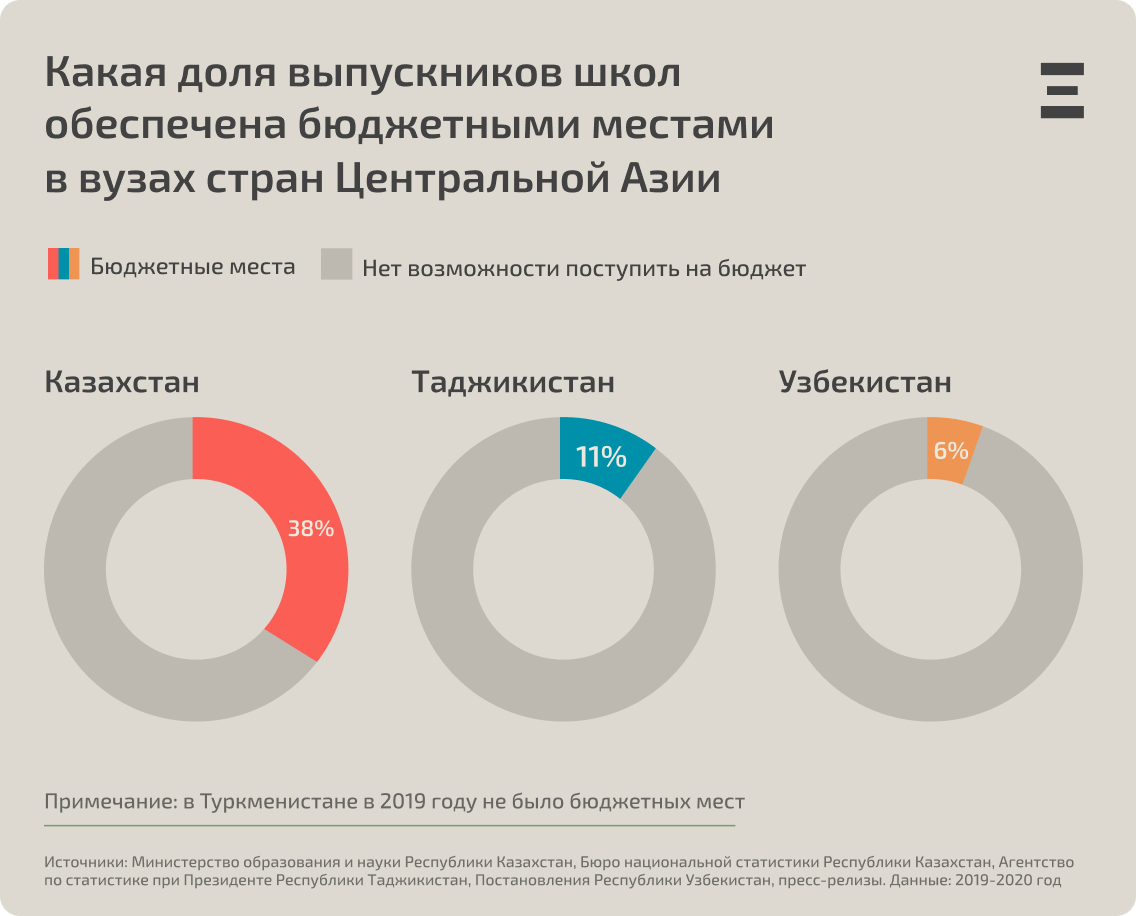 Также авторы отмечают, что лучше всего ситуация с бесплатным образование обстоит также в Казахстане: здесь более трети выпускников школ потенциально могут претендовать на бесплатное продолжение обучения в университете.