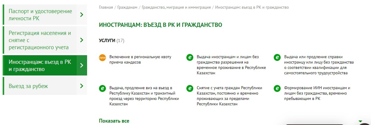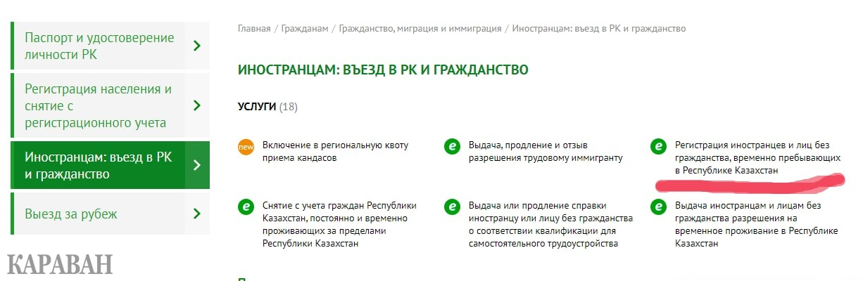 Корреспондент медиа-портала Сaravan.kz обнаружил, что с сайта Egov.kz пропала услуга "Регистрация иностранцев и лиц без гражданства, временно пребывающих в Республике Казахстан".