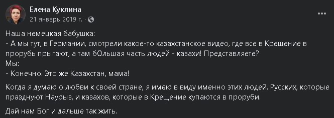 Некоторые комментаторы поздравляли с Крещением Господним на казахский лад: