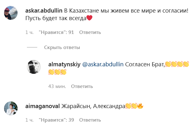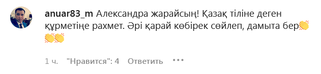 — Молодец, Александра! Спасибо за уважение к казахскому языку. Продолжай говорить и улучшать свои знания.