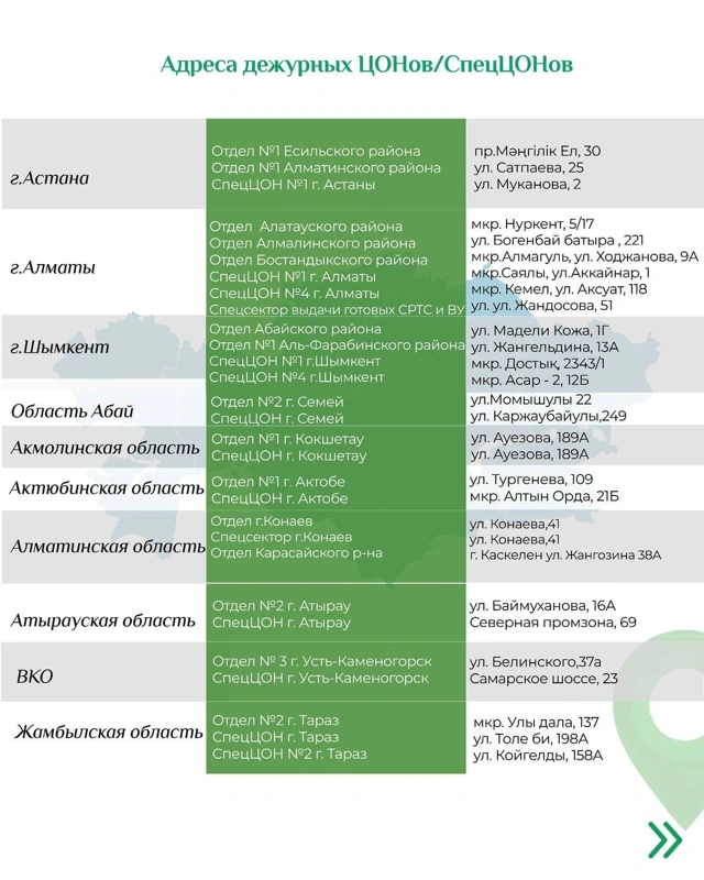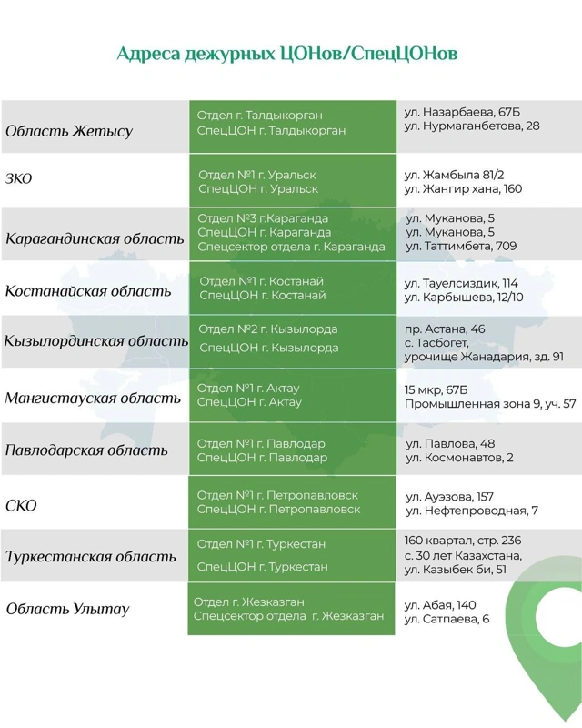 Ранее мы писали о том, что адреса дежурных ЦОНов изменятся в Алматинской и Абайской областях.