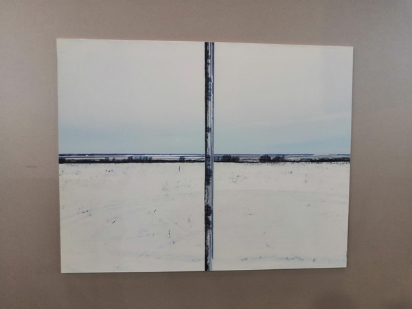 – В своих работах я стараюсь сочетать разные медиа, и на выставке “54°52′ северной широты” представлена серия фотоколлажей, живопись, инсталляции и видеоарт, посвященные североказахстанской зиме. Прошлогодняя зима внесла коррективы в мою жизнь – из-за пандемии я надолго осталась дома (Виолетта учится в Москве). А в обычное время я, как истинный кочевник, активно перемещалась через границы.