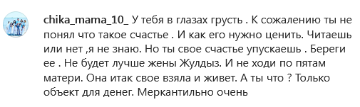 Но многие решили, что речь идет об его отношениях с женой Жулдыз Абдукаримовой.