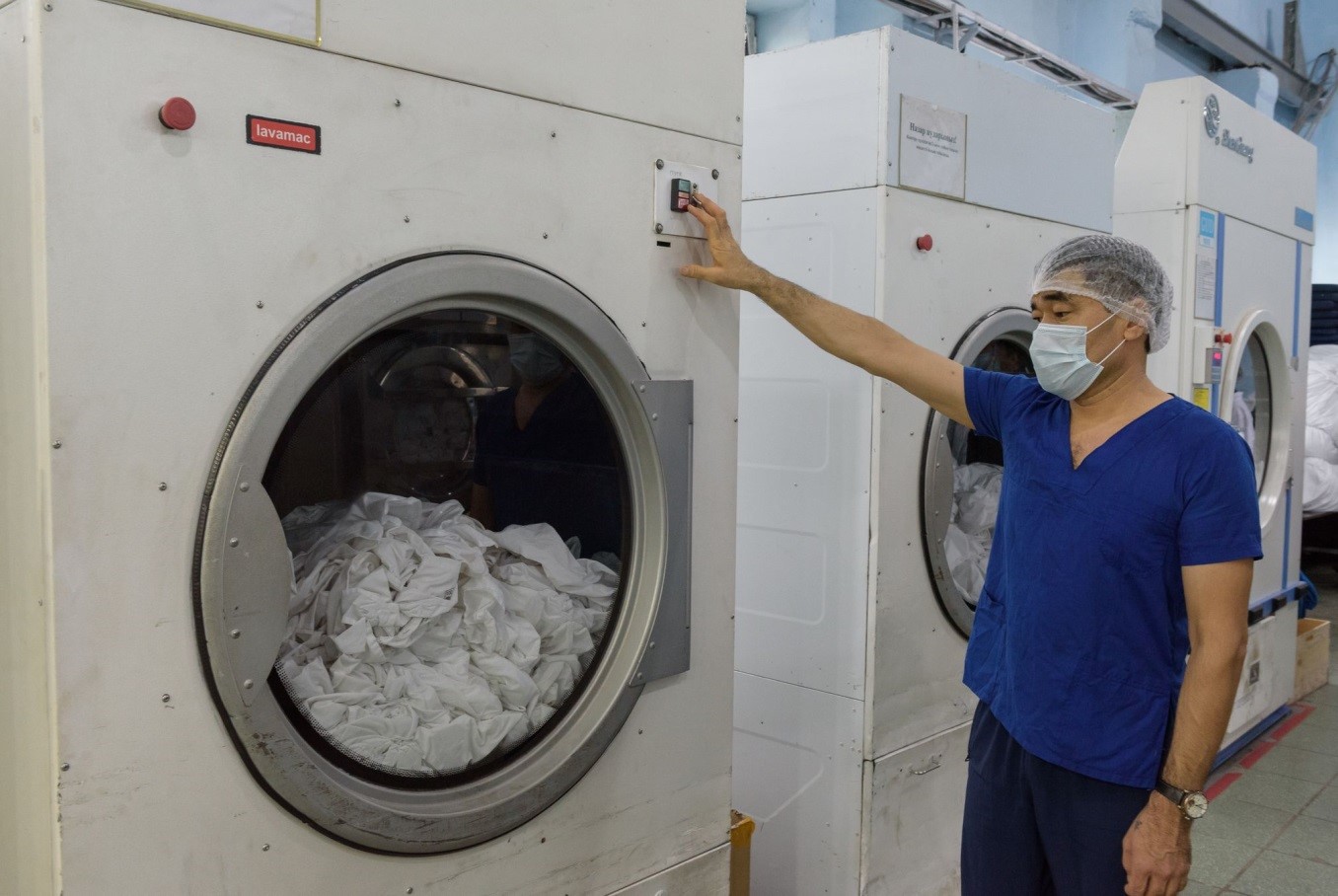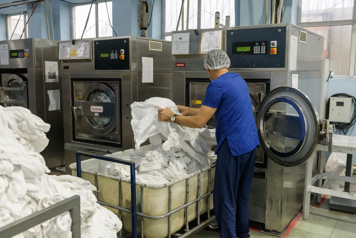 В ходе стирки используются моющие и профессиональные средства для обработки МСИ согласно требованиям действующим в Республике Казахстан стандартам.