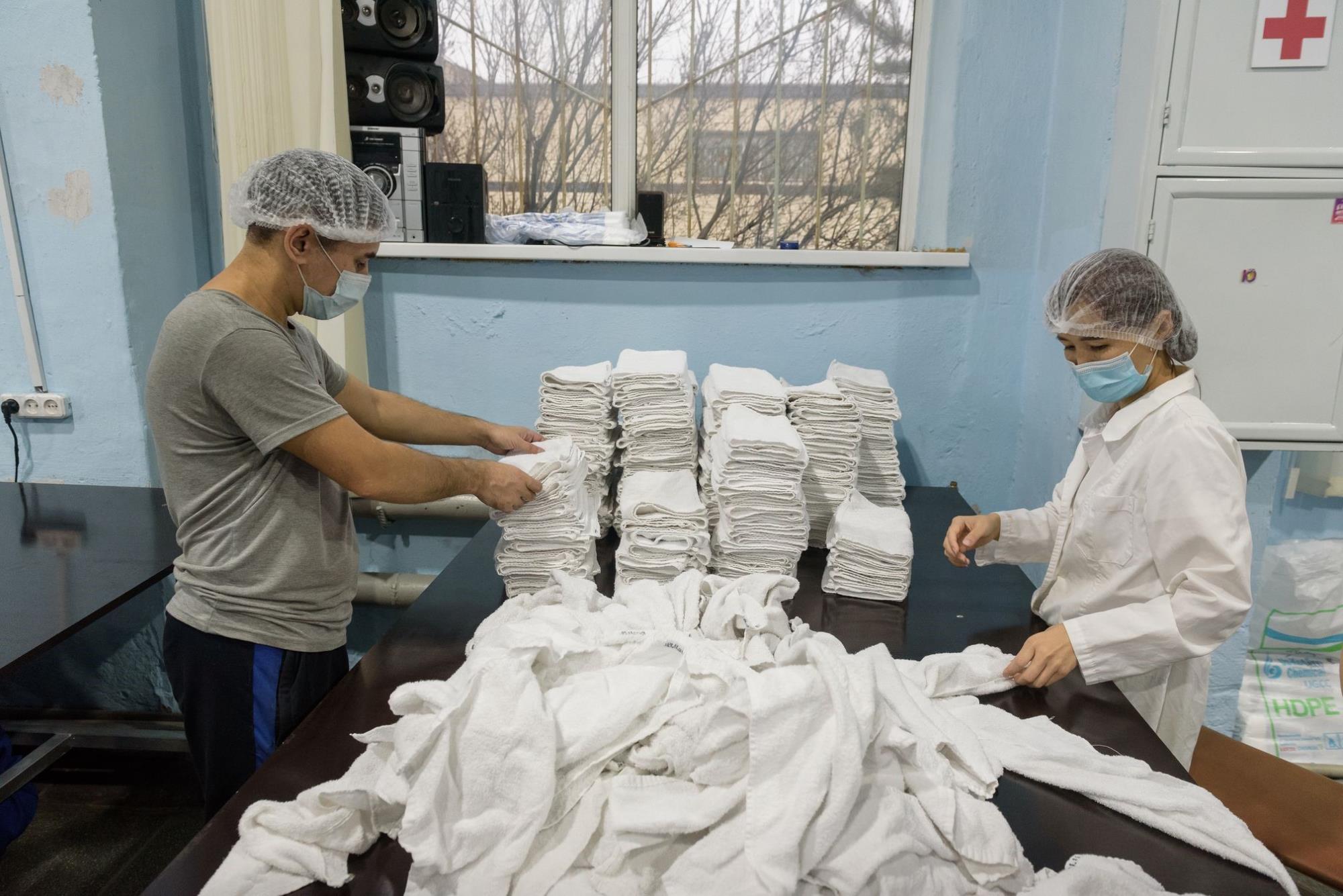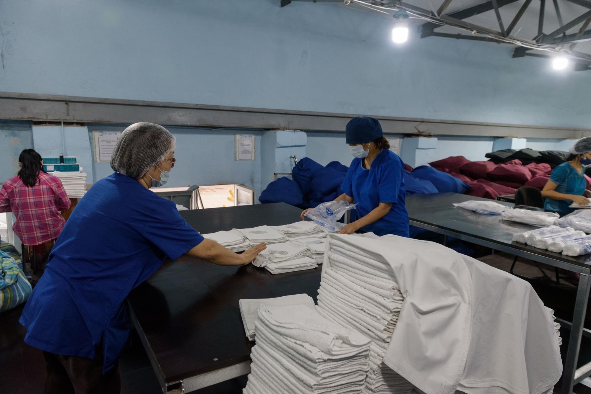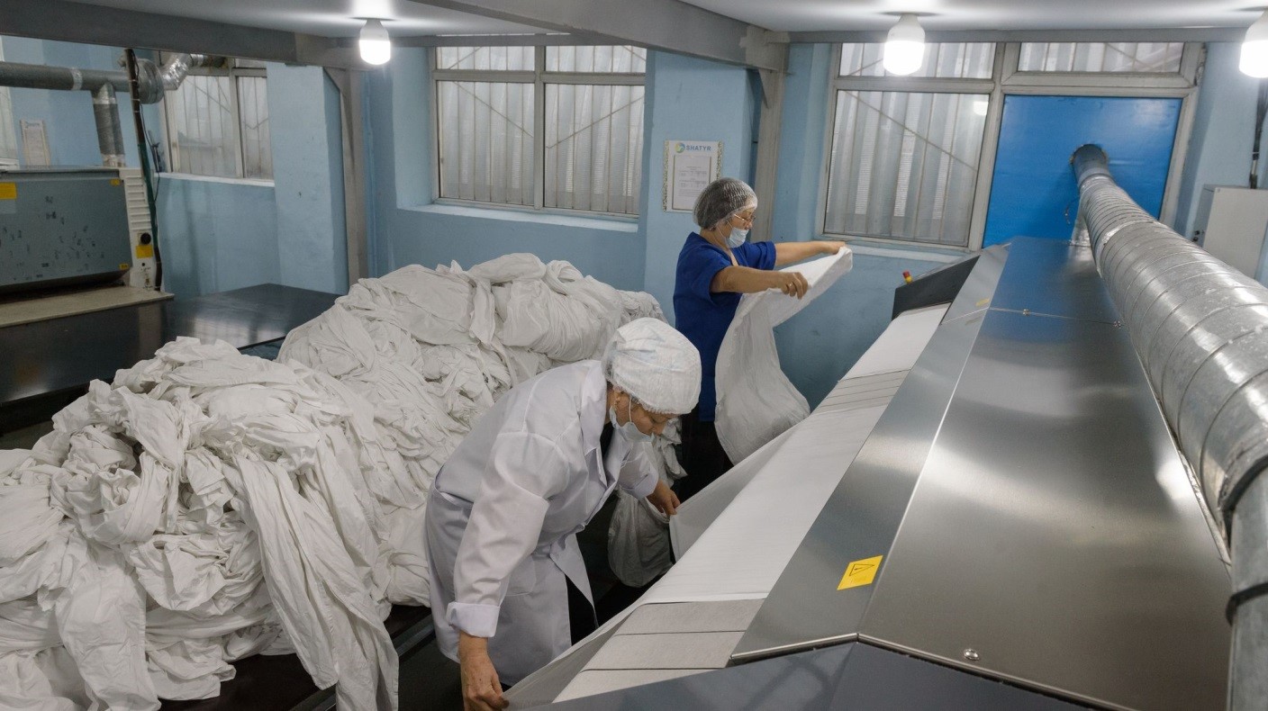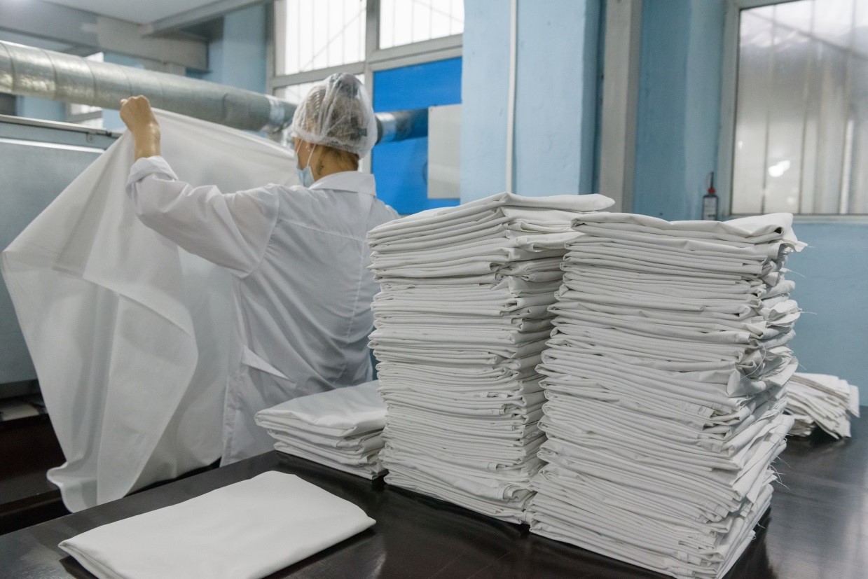 После глажки фасовщицы укладывают постельные комплекты в индивидуальные закрыте пакеты одноразового использования.