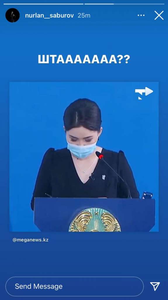 Сабуров опубликовал отрывок из пресс-конференции акима области сторис в своем Instagram, подписав публикацию лаконичным посланием – "Штааа??".