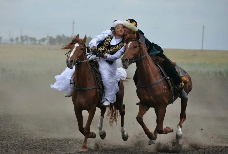 Начало ритуала были примерно таким же, как и сейчас. Девушка садилась на лошадь и скакала в степь, а парень, выждав определенный промежуток времени, отправлялся её догонять.