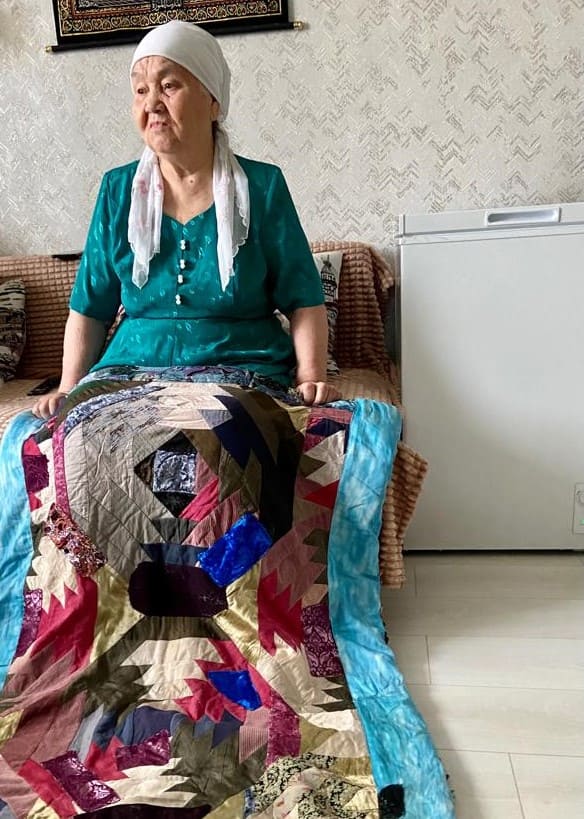 Моя другая, старшая Әже, тоже умела шить, во время войны получила медаль “За доблестный труд в тылу”, так как строчила фуфайки, руковицы, форму для фронтовиков. После войны шила одежду, в том числе, национальную- платье, чапаны, головные уборы для бабушек, малахаи для дедушек и другое.Как шутили и развлекались в казахской степи