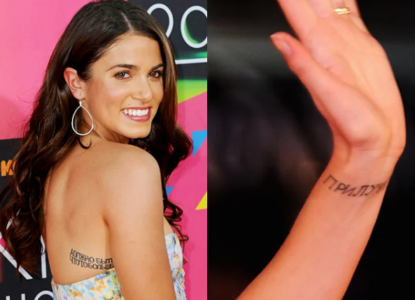 Кроме того, у неё довольно большая татуировка на русском языке, вероятно, означающая "должно быть что-то большее". Правда, она написана несколько странно, может быть, это тоже ей так Павел написал. Бойкая Никки сделала Прилучному предложение руки и сердца, свадьба должна была состояться в Вегасе. Актер сделал визу, подкопил денежек и уже собирался лететь в США, но Никки внезапно пропала, на звонки и электронные письма не отвечала. Павел для себя уже решил, что отношения закончены, но через несколько месяцев Рид вернулась как ни в чем ни бывало и опять заговорила о свадьбе.