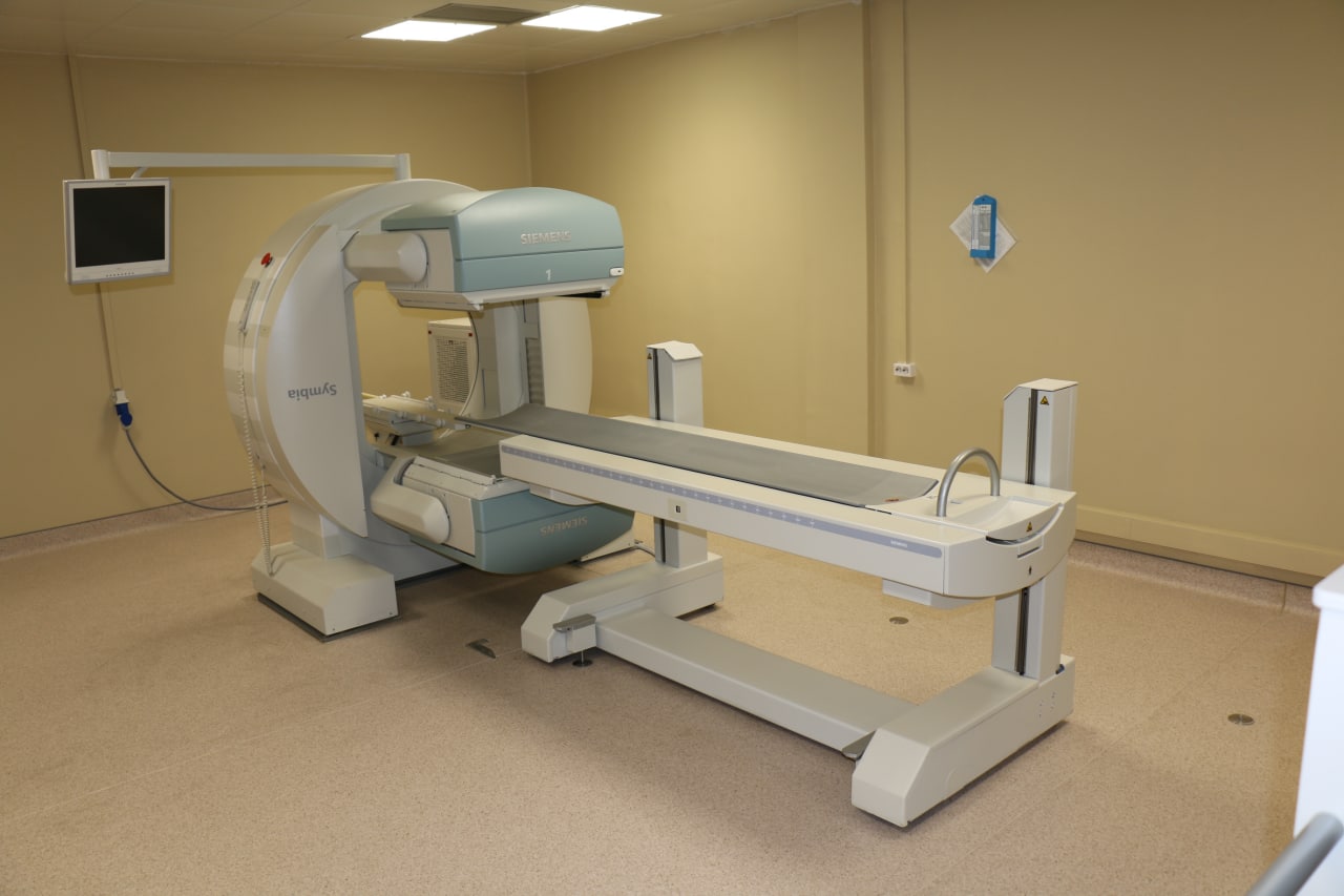 Здесь в год могут принять до 600 человек. Лечить начали с апреля и уже более 160 пациентов прошли радионуклидную диагностику. После небольшой экскурсии показывают легендарное отделение. Именно благодаря аппаратам в этой комнате специалисты теперь могут начать лечение кардиологических и неврологических заболеваний. Также установленные уникальные и почти единственные в стране аппараты позволяют на ранних этапах выявлять злокачественные процессы в организме.