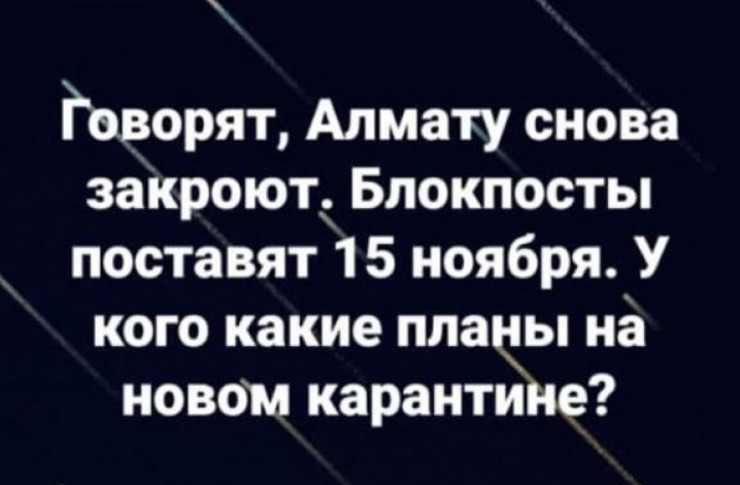 — На сегодняшний день в Алматы эпидситуация стабильная, не планируется выставлять блокпосты или закрывать город. Информация о том, что 15 ноября выставят блокпосты, является фейковой, — сообщил официальный представитель комитета санитарно-эпидемиологического контроля МЗ Казахстана Ержан Байтанаев.