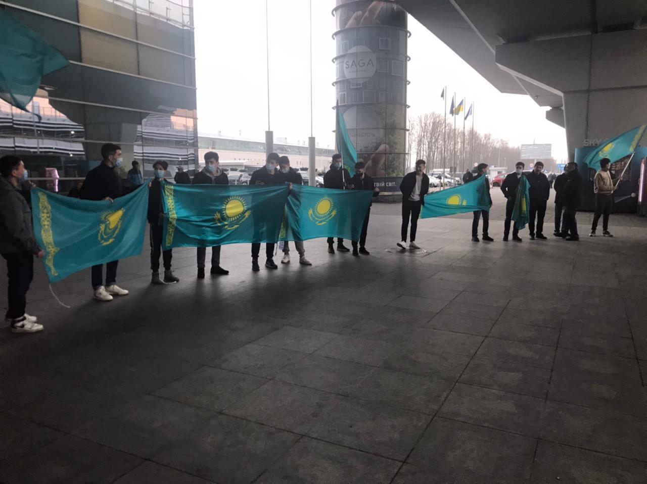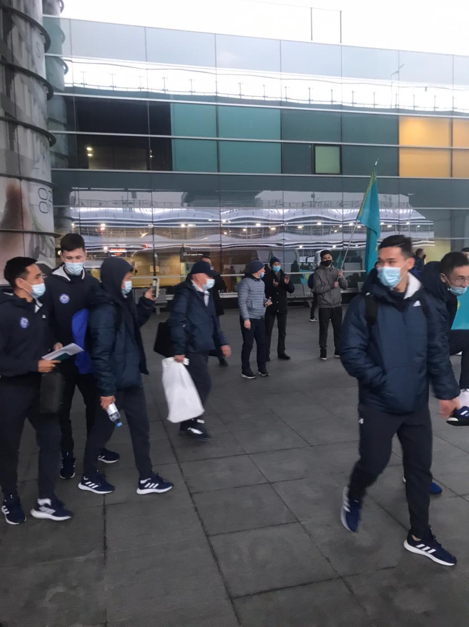Развернув национальные флаги, они тепло приветствовали спортсменов и пожелали им успехов в игре с сильной футбольной командой Украины. Приветствие на казахском языке было сделано и диспетчерской службой аэропорта «Борисполь».