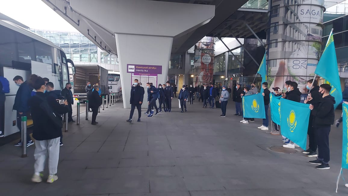 В международном аэропорту «Борисполь» сборную Казахстана встречали представители казахской диаспоры, казахстанские студенты, а также сотрудники Посольства Республики Казахстан в Украине.Об этом сообщается в телеграм-канале Посольства.