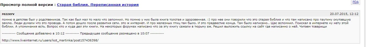 Тем не менее наступили перестроечные времена, и купить Библию на букинистических развалах труда не составляло. Текст про звезду Полынь люди там, и правда, находили, а вот про железных птиц и ящиков с чертями в священной книге не было ни слова.