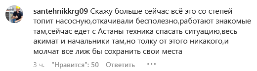 "Анонимный источник сообщил нам, что третьи сутки на 13-й насосной в Майкудуке устраняется авария: «Оборудование очень старое, а ремонтировать нечем. Эта насосная качает канализацию из Майкудука далее на станцию аэрации. Последствия могут быть катастрофичными: остановка полнейшая системы канализации в Майкудуке…»" — говорится в комментарии к фото залитого мутной жидкостью оборудования.