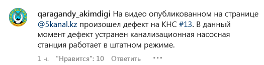 "На видео, опубликованном на этой странице, произошел дефект на КНС №13. В данный момент дефект устранен, канализационная насосная станция работает в штатном режиме", — говорится в сообщении.