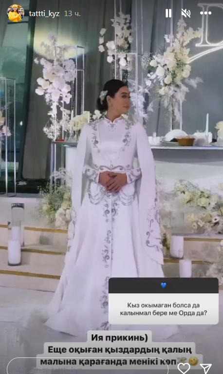 Подписчика заинтересовало, дают ли калын мал в Кызылорде, откуда родом новоиспеченный супруг девушки, Ернар Муасбай.