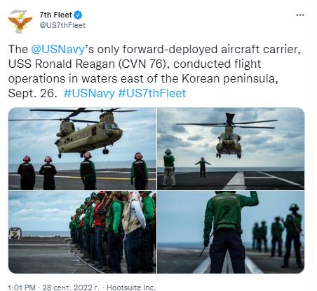— Наши военные усилили мониторинг и наблюдение и поддерживают максимальную готовность в тесной координации с Соединенными Штатами, — говорится в заявлении Объединенного комитета начальников штабов Сеула.