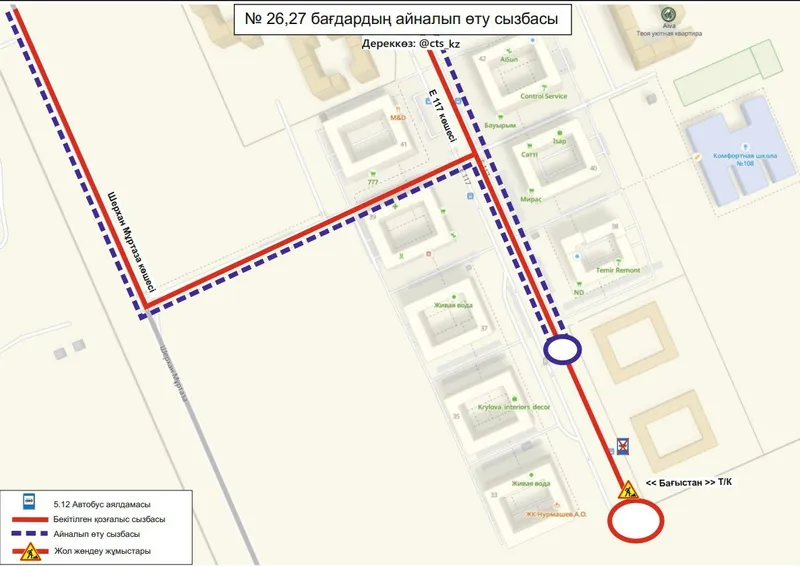 «Уважаемые пассажиры! Перекрыт проезд к остановочному пункту «ЖК Бағыстан». В связи с этим маршруты №26, 27, 502 временно не осуществляют посадку/высадку пассажиров на данной остановке», – проинформировали в компании.