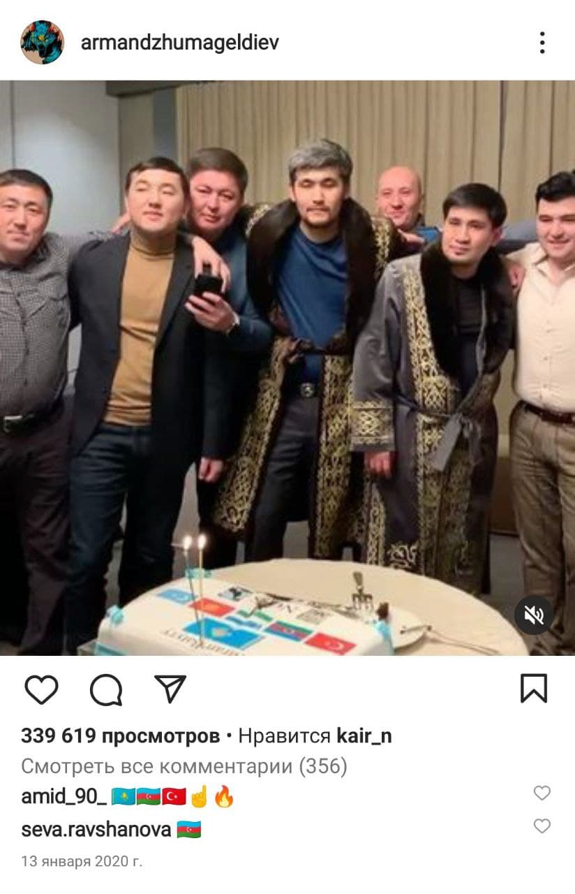 Знакомой Армана является и блогер Айнур Турсынбаева, у которой сейчас 3,9 млн подписчиков в Instagram. Упомнается, что супруг Айнур дружит с Арманом, и именно поэтому девушка показала "знак волка" на совместном фото.