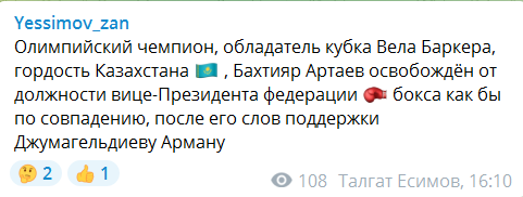 После ареста Армана поддержал знаменитый боксер Бахтияр Артаев, олимпийский чемпион и спортивный чиновник. Он также потребовал освобождения Джумагельдиева.
