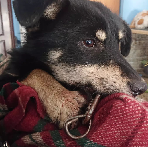 В посте сообщили, что щенок жил во дворе, его там подкармливали, однако недавно его обнаружили с карабином, торчащим в челюсти.